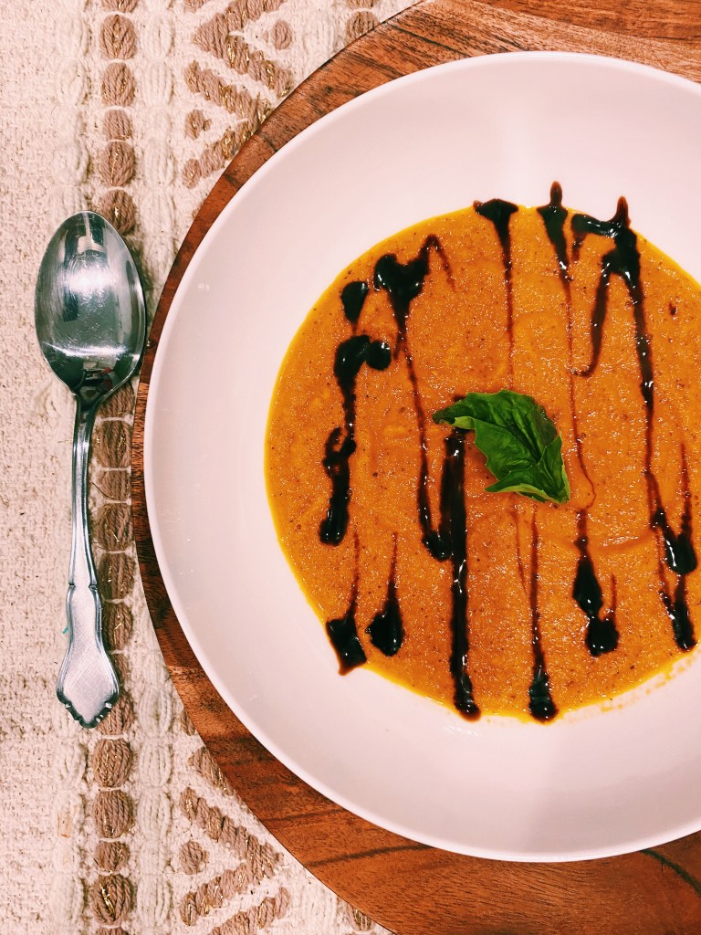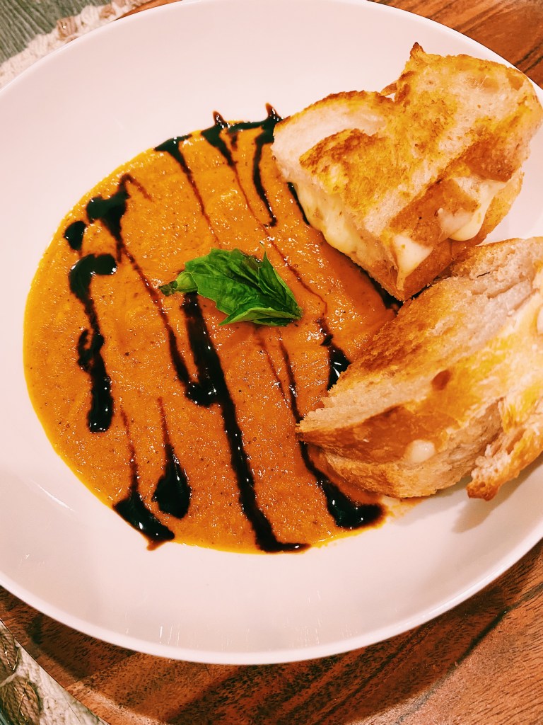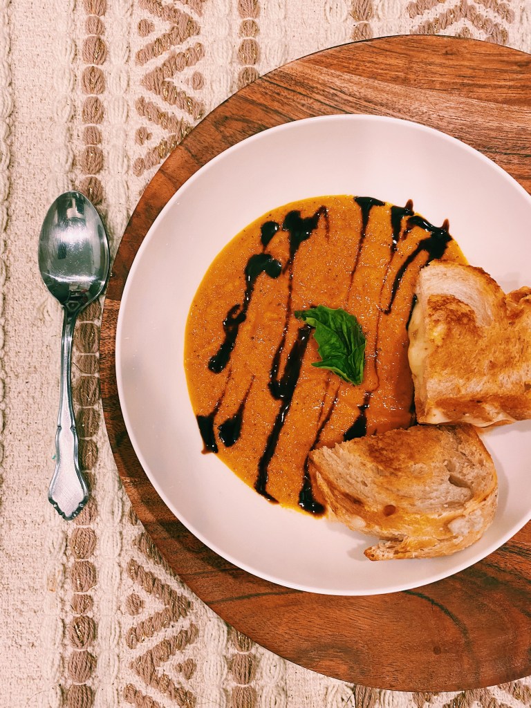 I had several tomatoes laying around that were starting to go bad so I whipped up homemade tomato soup! It was my first time making a soup so this was quite the experience for me. So delicious, flavorful, and perfect for cold days like today! Serve alongside your favorite grilled cheese to soak up these divine flavors.