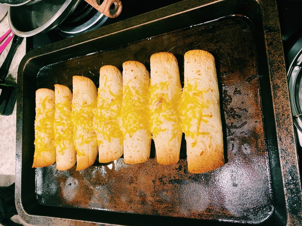 5.) Place in oven and cook for about 12 minutes total. With about 3 minutes left, Sprinkle 1 cup of Mexican cheese over taquitos. Try not to get on the baking sheet as once cheese melts, it allows the taquitos to stick to the pan!