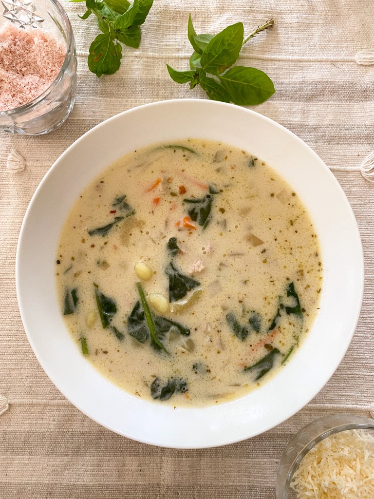 3.) Add chicken broth, cooked wild turkey, gnocci, crushed red pepper flakes, and Italian seasoning. Cook for 10-12 minutes, covered. Once gnocci is tender, add heavy cream, milk, and spinach to pot. Stir to combine and cook for 5 minutes to allow flavors to meld. Add parmesan cheese and cook until cheese has melted.
